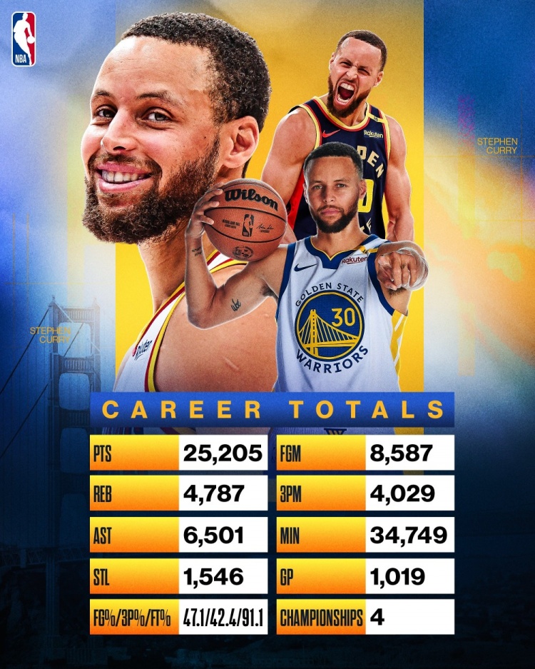 NBA官方:“斯蒂芬-库里的职业生涯充满了令人难忘的时刻,他的名字仍然铭刻在历史上!”
