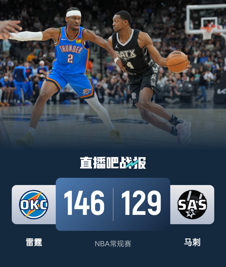 3月3日讯 NBA常规赛,马刺今日迎战雷霆,前者上场比赛战胜灰熊,后者则是取得两连胜,此役切特、文班亚马和贝西缺战。