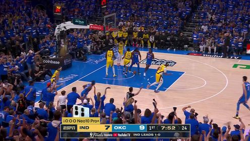 6月9日讯 NBA总决赛G2,雷霆继续坐镇主场迎战步行者。目前大比分步行者1-0领先。比赛开始,双方开场便陷入缠斗,亚历山大传射建功,步行者...