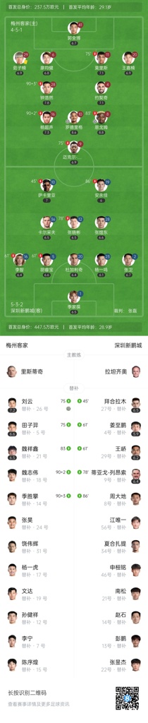 第76分钟,深圳中场传球出现失误,刘云断球和罗德里戈打出撞墙配合后在禁区里铲射破门,梅州客家3-0深圳新鹏城。↓