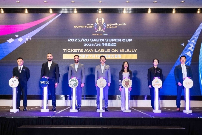 中国香港,2025年7月9日 ─ 由森立体育主办、获中国香港足球总会及沙特阿拉伯足球协会支持的“2025/26 沙特超级杯”今日举行媒体发布会,宣布赛事将于今年8月19日至23日在中国香港大球场隆重举行。这项享誉国际的足球锦标赛首次在东亚地区举行,今年选择落户中国香港,势必吸引足球迷的广泛关注。