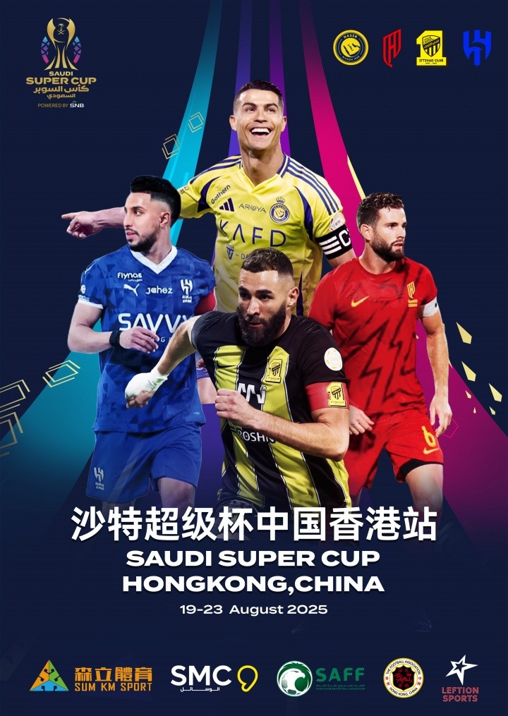 “2025/26 沙特超级杯”将在中国香港上演三场比赛,包括两场半决赛和一场决赛,并将在可容纳4万人的中国香港大球场进行。根据早前6月19日的抽签结果,8月19日(星期二)晚上8时(UTC+8)举行的首场半决赛,将由利雅得胜利对阵吉达联合;8月20日(星期三)晚上8时(UTC+8)举行的次场半决赛,由卡迪西亚迎战利雅得新月;两场半决赛的胜方将于8月23日(星期六)晚上8时(UTC+8)进行最终决战,争夺本届沙特超级杯的冠军宝座。