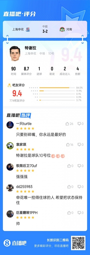 【】中超第四轮最佳球员:基莱斯当选,为了天津永远进攻!