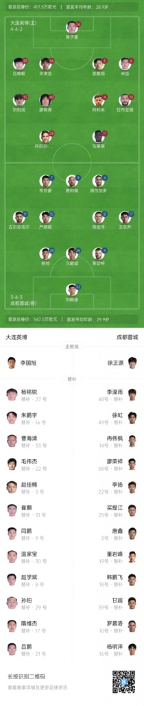 英博vs蓉城首发:4外援PK3外援!马莱莱先发,费利佩、韦世豪登场