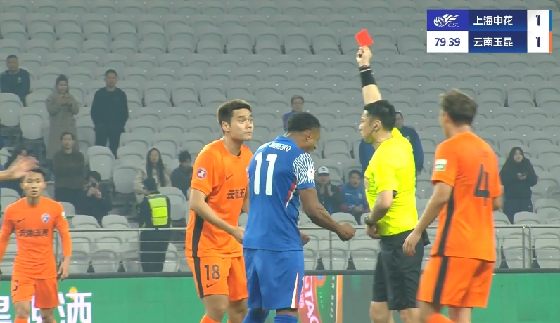 04月03日讯 中超第4轮,上海申花vs云南玉昆,比赛第79分钟,弋腾两黄变一红被罚下场。回放显示弋腾故意将球停远,裁判看到这一幕果断指向...