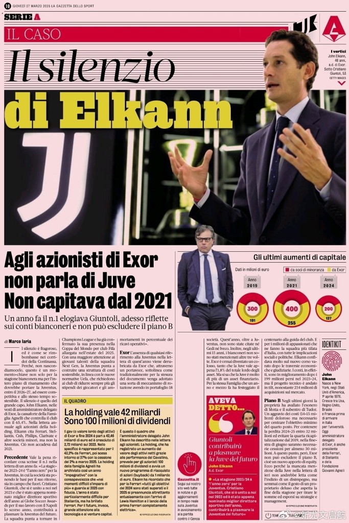 埃尔坎的沉默约翰·埃尔坎在其年度股东报告中对尤文图斯的只字不提引发了争议。自 2021 年以来,Exor 的信中首次没有提到尤文图斯,也没...