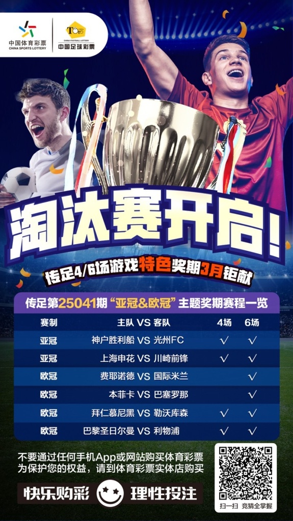 淘汰赛开启!传足特色奖期第25041期聚焦亚冠&欧冠